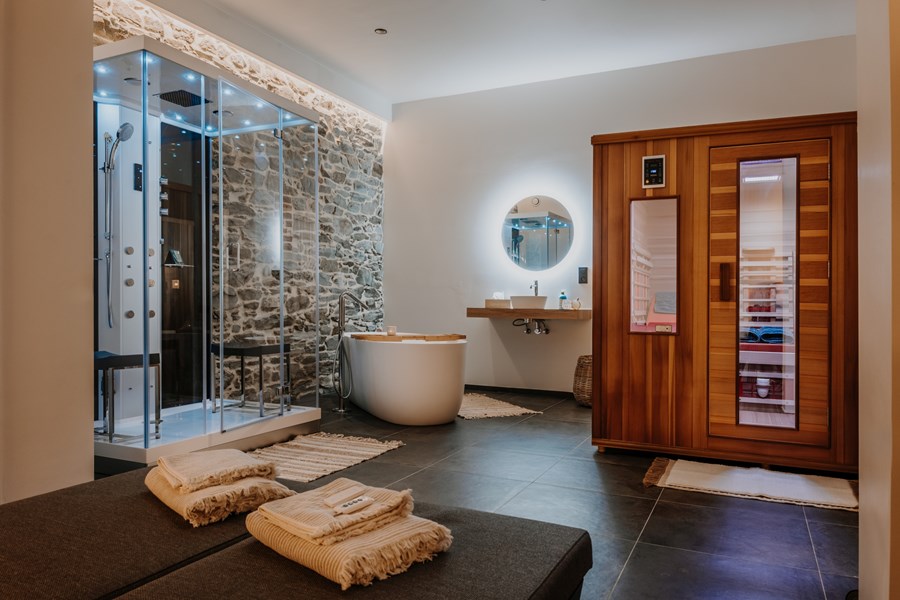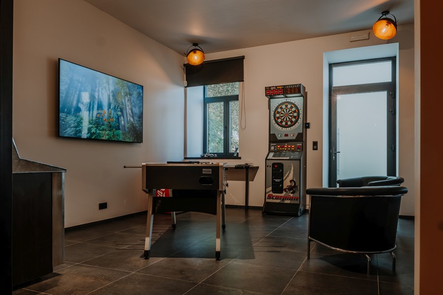 The wellness area is an oasis of well-being, featuring an invigorating hammam shower, a Health Mate infrared cabin with therapeutic effects, and a balneotherapy bathtub for total relaxation, all under a starlit ceiling for a magical touch. For moments of entertainment and fun, take advantage of the games room, equipped with a table soccer for wild games and darts to challenge your friends. Book now and let yourself be seduced by the comfort, refinement and unforgettable moments that await you.