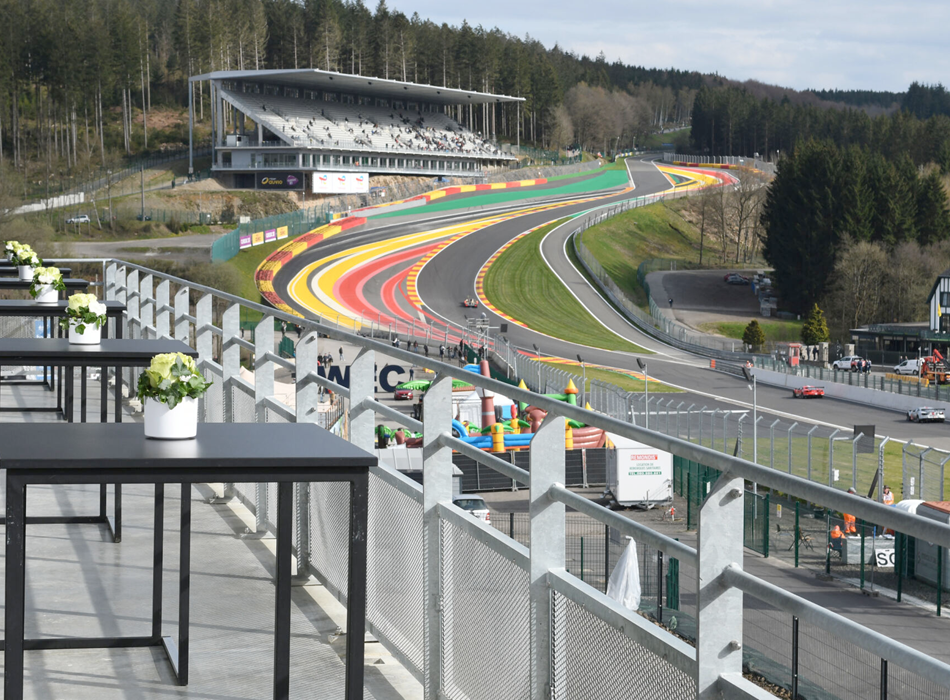 Nos loges Raidillon se situent en-dessous de la nouvelle tribune qui surplombent le célèbre virage. Offrant une vue à couper le souffle sur le Raidillon, la descente de la Source et une partie du Kemmel, elles disposent d’une terrasse privative avec un sentiment unique d’être sur la piste.