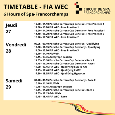 Het bezoek van de FIA WEC aan België is zowel een test voor toekomstige technologieën als een benchmark-event voor endurance racing. De talrijke activiteiten en de toegang tot de paddock zijn in de ticketprijs inbegrepen!