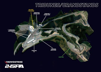 * De paddocks (mits een algemeen entreebewijs + paddockticket), de F1-tribunes, de Raidillon, De Terrassen Raidillon, Eau Rouge, Endurance, Tribune Chicane, de terrassen van de enduranceboxen, etc... zullen toegankelijk zijn voor het publiek, U heeft ook toegang tot de paden rondom de piste.