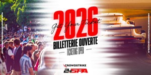www.crowdstrike24hoursofspa.com kan het publiek zijn tickets voor 2026 aanschaffen… aan hetzelfde tarief als in 2025! Op de speciale tickets (zoals campings en parkings) is het weliswaar nog even wachten, maar de tickets met algemene toegang en algemene toegang